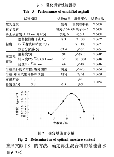 按照文獻(xiàn) [ 8] 的方法 , 確定再生混合料的**佳含水量6.3 %。